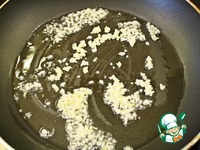 Мелко нарубим три зубчика чеснока, выложим на сковороду, нагретую на среднем огне с небольшим количеством масла, обжарим минуту |