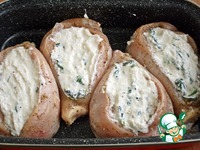 Описание: Скоро новогодние праздники, столы будут ломиться от всевозможных вкусностей и я хочу тоже внести свою лепту в этот праздник жизни! Предлагаю Вашему вниманию совершенно не сложное, но очень вкусное, к тому же лёгкое для организма блюдо из куриного филе, запечённое в духовке с зеленью и рикоттой! Прекрасно подходит не только на праздники, а также на семейный обед, ужин!