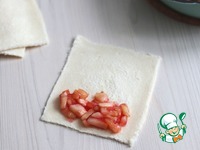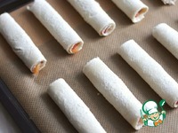 Тостовые трубочки с фруктовой начинкой выложить на пекарский лист, застланный пекарской бумагой. |