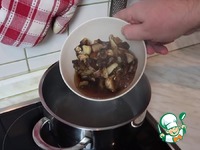 4. Для приготовления пюре возьмем 4-5 половников бульона. Сперва обжарим грибы с луком и добавим тимьяна. |