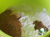 В миске смешать муку, соль, сахар, имбирь, перец, гвоздику, разрыхлитель. Я использовала готовую смесь пряностей для выпечки (1,5 ч. л.). |
