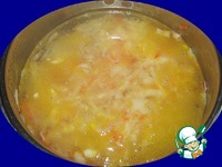 Отправляем картофель в кастрюлю и варим ещё 15 минут. Пробуем на вкус, добавляя соль, сахар и перец. |