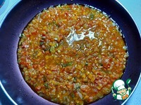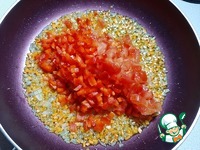 Спассировать лук и морковь на растительном масле, добавить болгарский перец и помидор, потушить минут 10, добавив воды. |