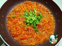 Чеснок и зелень порубить, добавить в подливку, потушить еще минуты 3. |