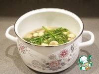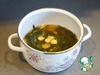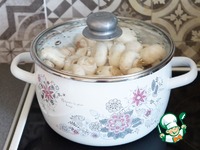 Накройте крышкой и варите минуты 3-5 на небольшом огне. Грибы не должны сильно увариться. Буквально только немного прокипеть. |