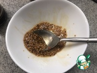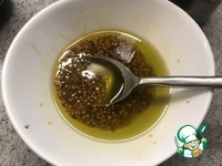 Готовим заправку: Обе горчицы, мёд и соевый соус смешиваем до однородности. |