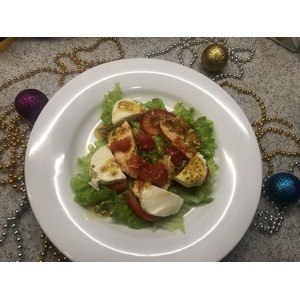 Описание: Более лёгкий, чем традиционные новогодние салаты, отлично подойдёт на праздничный стол. Удобно, что можно подготовить все ингредиенты, а затем разложить порционно непосредственно перед приёмом пищи.
