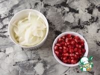 Лук тонко нарезать. Гранат очистить. |
