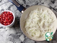 Лук обжарить на растительном масле, до мягкости. Добавить зерна граната и потушить еще минуты 3-4. |