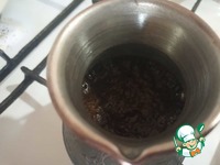 Добавляем в турку холодную воду и хорошо перемешиваем. Ставим на очень медленный огонь. Когда начнёт подниматься пенка, снимаем с огня. |