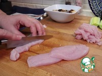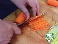 4. Нарезаем лук и морковь тонкой солонкой. Следом за овощами нарезаем грибы. |