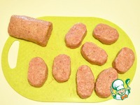 Аккуратно нарезать заготовку на кусочки толщиной 2 - 2,5 см. Где необходимо, подправить края, придав форму овала - медальон. |