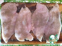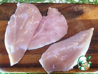Подготовим куриное филе. Разрежем филе на 2 части вдоль и немного отобьем ладошкой. |