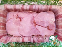 Карбонад тонко нарезанный. Можете взять любое копченое мясо или ветчину. |
