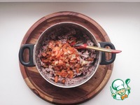 Размять фасоль толкушкой, добавив бульон. Обжарить на растительном масле лук с морковью (посолить и поперчить). Добавить к фасоли. |
