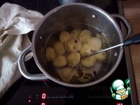 Пробную партию обязательно нужно сварить. А как же! Ставим воду. Можете использовать бульон. Я обычно готовлю в подсоленой воде с перцем и лавровыми листьями. |