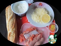 Наши исходные продукты. Майонез нужно смешать со сметаной. С половинки лимона снять цедру теркой. Сыр натереть на мелкой терке. Семгу нарезать длинными неширокими ломтями. |