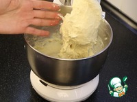 К муке добавляю дрожжи, сахар, яйца, молоко и замешиваю тесто минут 10. Не добавляйте сразу всю муку. Оставьте граммов 50 и добавляйте ее постепенно. |