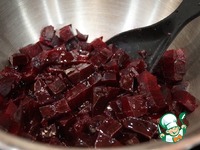 Основа основ этого винегрета - маринованный лук, который с успехом заменит нам и квашеную капусту, и маринованные огурцы. Пусть вас не пугает, что его много. Лук чистим и нарезаем мелким кубиком. |