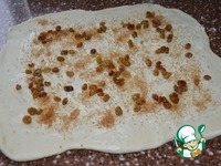 Раскатать тесто в пласт, 35 /22 см.. Смазать мягким сливочным маслом, посыпать коричневым сахаром. Рассыпать "коньячный" изюм. Свернуть рулетом. |