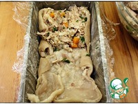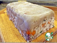 Добавляем бульон и хорошо перемешиваем. Если Вы не очень уверены, что мясо хорошо схватится, то добавьте в бульон желатин. У меня бульон получился очень наваристым и я не добавлял. |