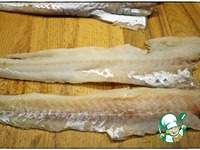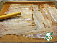 Накрываем филешки пищевой плёнкой и слегка отбываем. Я молоточком не пользуюсь, для этих целей у меня есть вот такая скалка, которая отбивает не хуже, но не повреждает волокна рыбы, мяса... |
