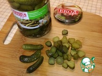 Огурцы нарезать ломтиками и отправить в миску к сметане, укропу и чесноку. Я использовала огурцы маринованные деликатесные "Закарпатские" от ТМ ЕКО. Посолить и поперчить по вкусу. Хорошо перемешать. |
