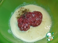 Добавить фарш, посолить и поперчить по вкусу. Хорошо взбить блендером. |