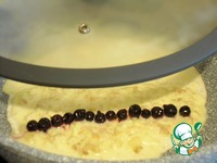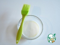 Открытую половину лепешки без начинки смазать отставленной сметанно-яичной смесью. |