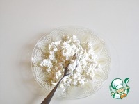 Творог взять не сухой и растереть вилкой до однородной массы. |
