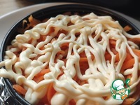 Сверху грибной паштет, я его не промазываю майонезом, но вы опять ориентируйтесь на свой вкус. |