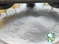 Добавить два вида муки, растопленное сливочное масло и разрыхлитель. |