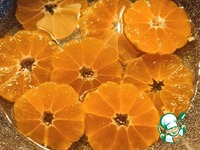 Сварить сироп из воды и сахара, выложить кружочки очищенных мандарин, проварить минуты 2, оставить остывать в сиропе. |