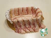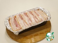 Сверху оставшийся фарш, прижмите, чтобы не было пустот. Укройте полосками бекона. |