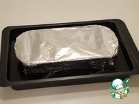 Накройте форму фольгой. Поставьте на противень. Налейте воды, чтобы доходила до 2/3 формы. |
