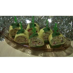 Описание: Быстрые, нежные и вкусные рулетики на праздничный стол. Готовится такая закуска просто, а ингредиенты доступные и бюджетные! Попробуйте, очень вкусно!