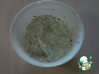 Для соуса смешать майонез, сметану и мелко порубленную зелень укропа. |