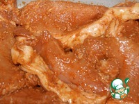 Вылить его в мясо и хорошо втереть маринад в каждый кусок. Поставить мясо на ночь в холодильник (у меня стояло 36 часов). |