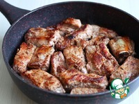 В раскаленную сковороду, где обжаривались овощи и грибы, при необходимости добавить 2-3 ст. ложки растительного масла, выложить свиные ребрышки. |