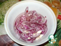 Заливаем его кипятком, добавив сахар, соль и уксус - на 15 минут. |