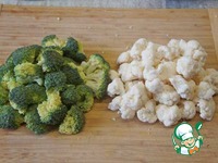 Брокколи и цветную капусту разобрать на небольшие соцветия. |