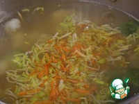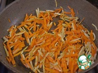 Морковь и сельдерей нашинковать соломкой, спассеровать на растительном масле до полуготовности, |