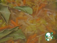 В конце добавить нут, пару лаврушек и потомить суп на маленьком огне 3 минуты. Лаврушку удалить. Дать супу настояться минут 10. |