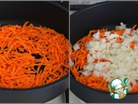 Обжарить овощи в растительном масле (2 ст. л) до полуготовности. (сначала морковь минуты три, затем добавить лук) |