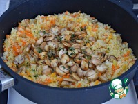 Грибы (я готовила гарнир с шампиньонами, но с лесными грибами блюдо получается еще вкуснее!) нарезать произвольно, обжарить в растительном масле (1 ст. л) до румяности. Огонь активный. |