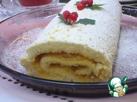 Смажьте апельсиновым джемом, оставляя с внешней стороны свободными сантиметров 5 и сверните рулет. |