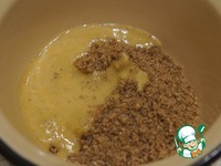 Достать форму с тестом. Ореховую смесь выложить на дно будущего пирога. |