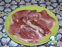 Для приготовления данного блюда лучше взять филе от свиной лопатки. И так - свинину нарезать на небольшие тонкие пластины и отбить молотком или пробить тендерайзером. |