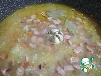 Заливаем всё это горячей водой, чтобы кё уровень был на 1,5-2 см выше уровня риса. Прикрываем крышкой и после закипания уменьшаем огонь. |