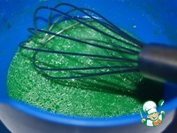 Смешать венчиком воду, муку и масло. Добавить краситель и хорошо размешать. |